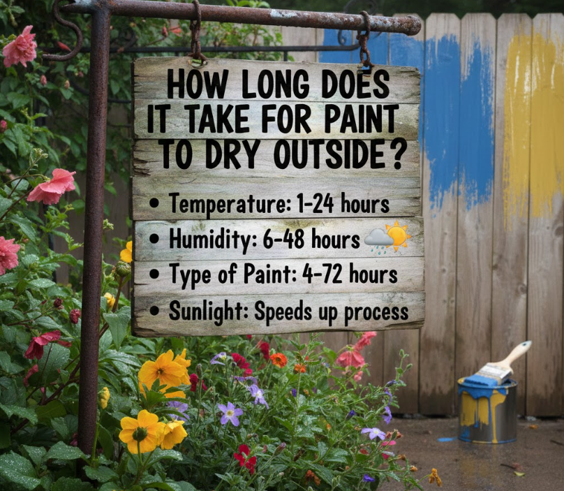 Direct sunlight and warm temperatures accelerate drying, while rain, high humidity, or cold temperatures slow it significantly. Always check weather forecasts before painting.