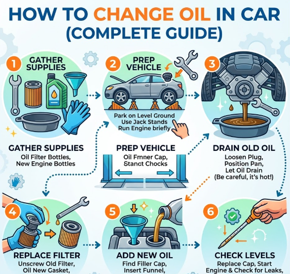 Learning how to change oil in car is one of the most valuable skills every vehicle owner should have. Regular oil changes are essential for maintaining engine performance, improving fuel efficiency, and extending the lifespan of your car. Engine oil acts as a lubricant that reduces friction, prevents overheating, and keeps internal components clean. Without timely oil changes, engines can suffer from wear, sludge buildup, and costly damage.