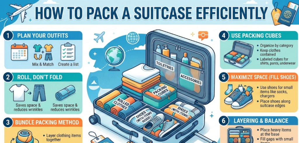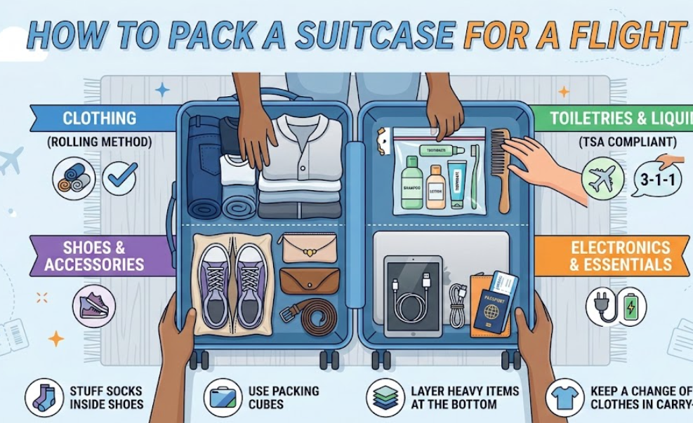 Packing a suitcase may seem simple, but doing it efficiently and strategically can dramatically improve your travel experience. Learning how to pack a suitcase properly helps you avoid overpacking, prevents wrinkles, protects fragile items, and ensures you have everything you need during your trip.