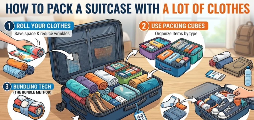This comprehensive guide explains how to pack a suitcase efficiently, how to fit a lot of clothes in limited space, how to maximize luggage capacity, and how to pack correctly for flights.